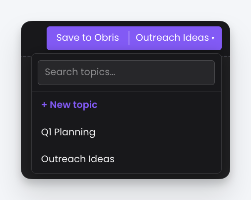 - Click Save to Obris to save to your currently selected topic.
